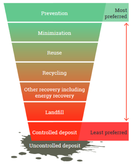 According to the waste management hierarchy, reuse is the third option, right after prevention and reduced use. Recycling is positioned further down the ladder, why then is it more commonly seen in the regulations and guidelines?